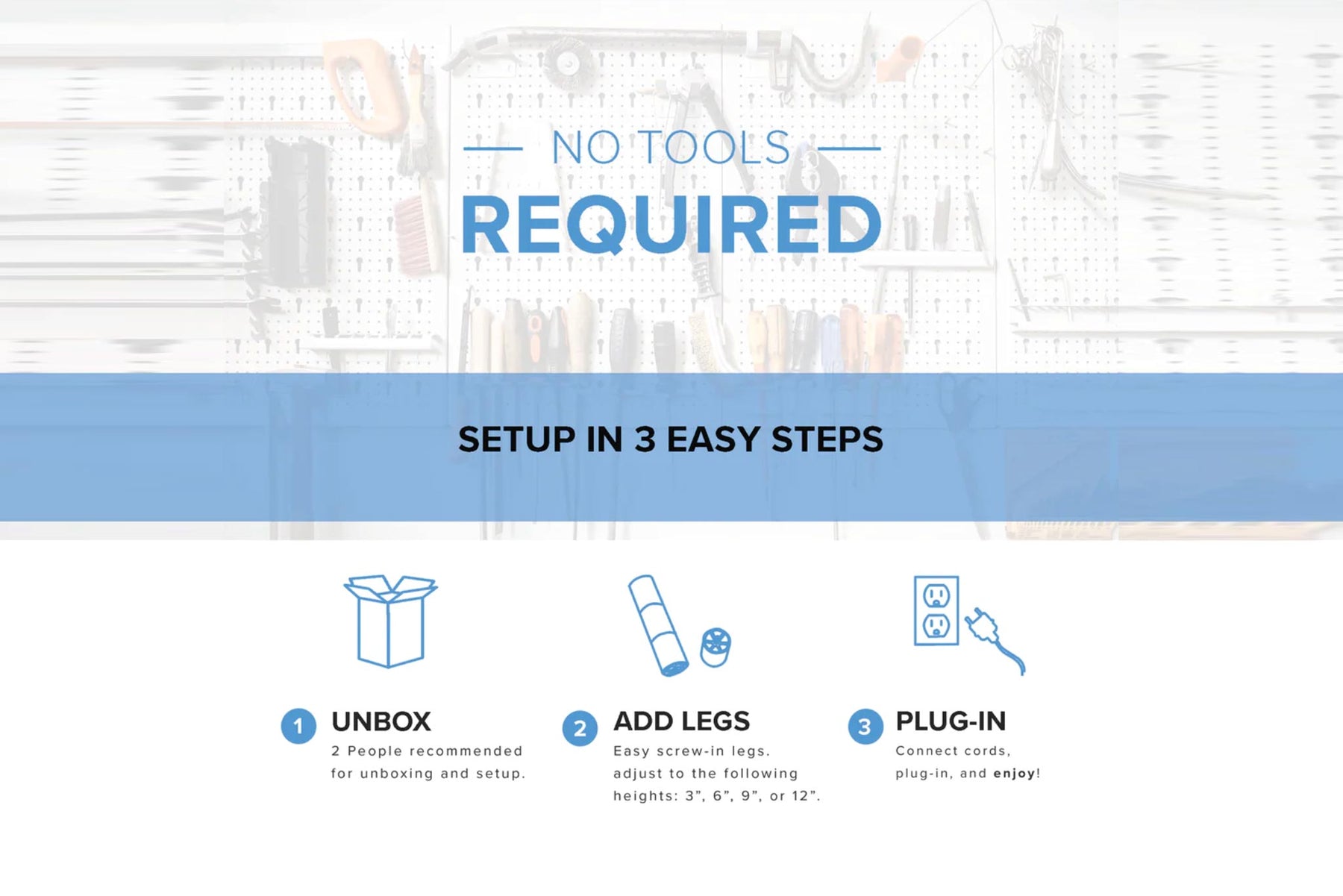 One person can assemble the entire base in just a matter of minutes and without any tools.